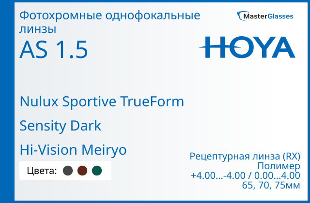 Фотохромная линза для очков Hoya Nulux Sportive TrueForm 1.5 AS Sensity Dark Hi-Vision Meiryo, рецептурная